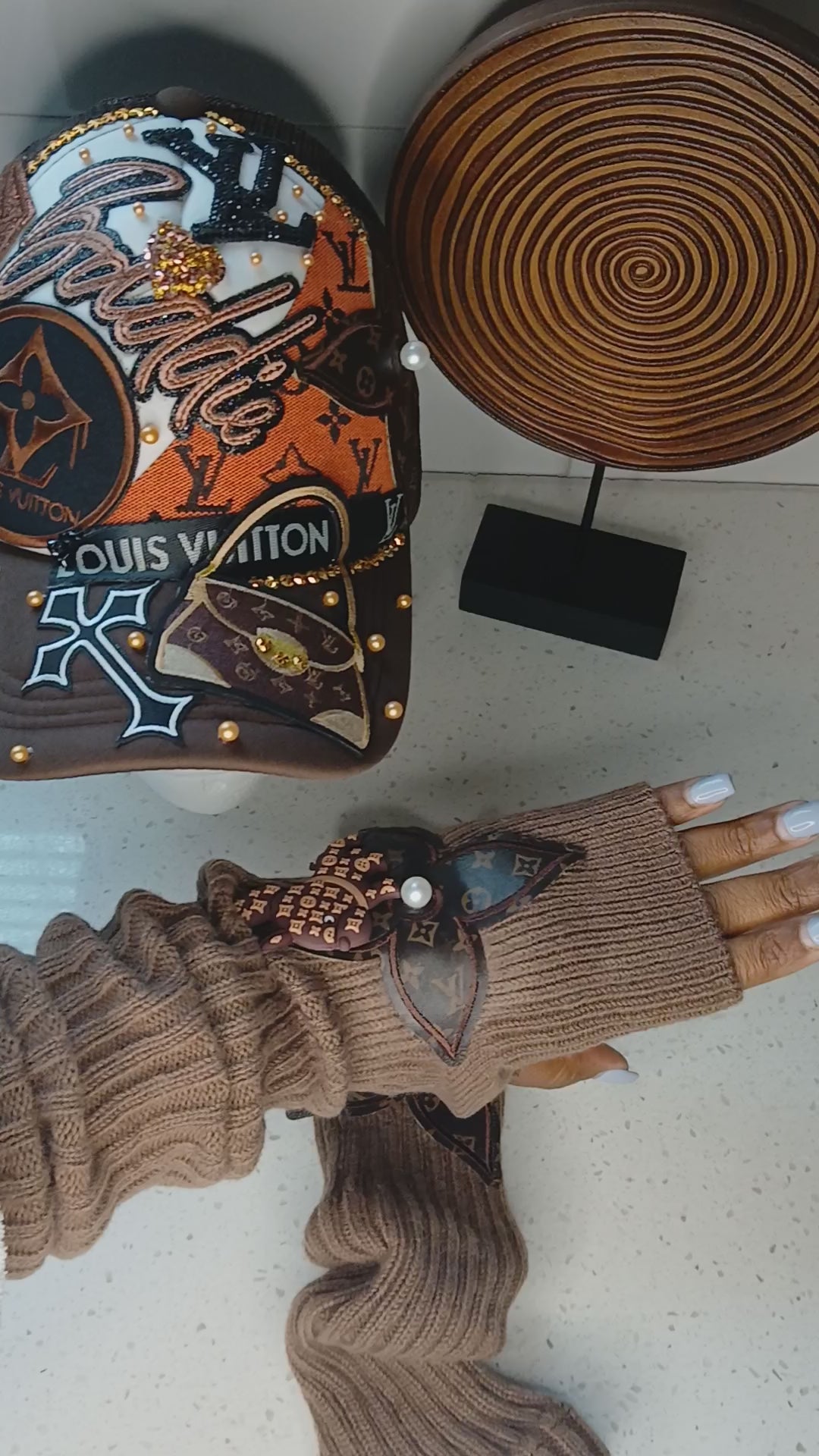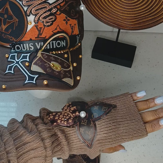LV INSPIRED Snapback Junk Hat with matching fingerless gloves