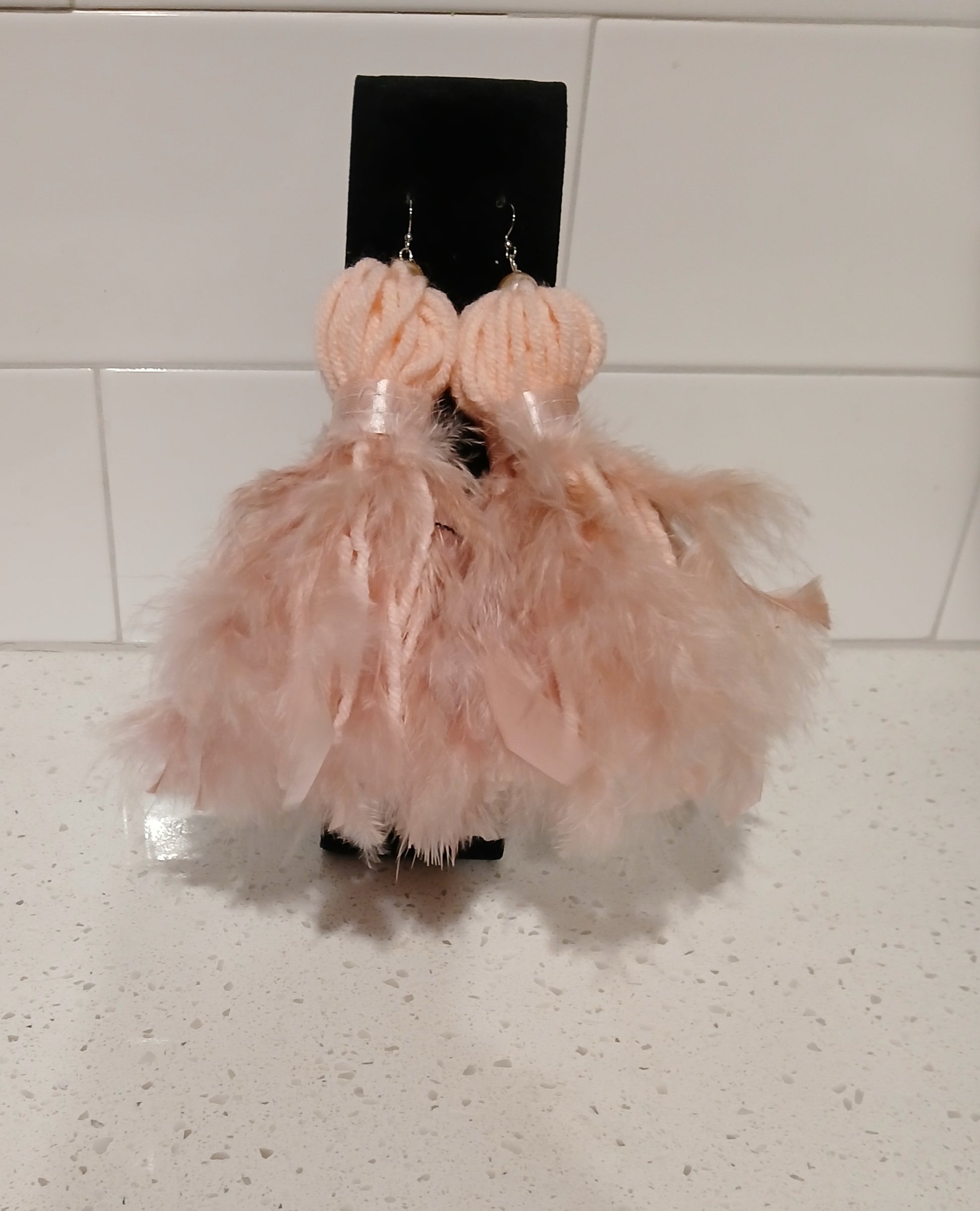 Pink Yarn, Pink Ostrich Feathers and Pink Pearls