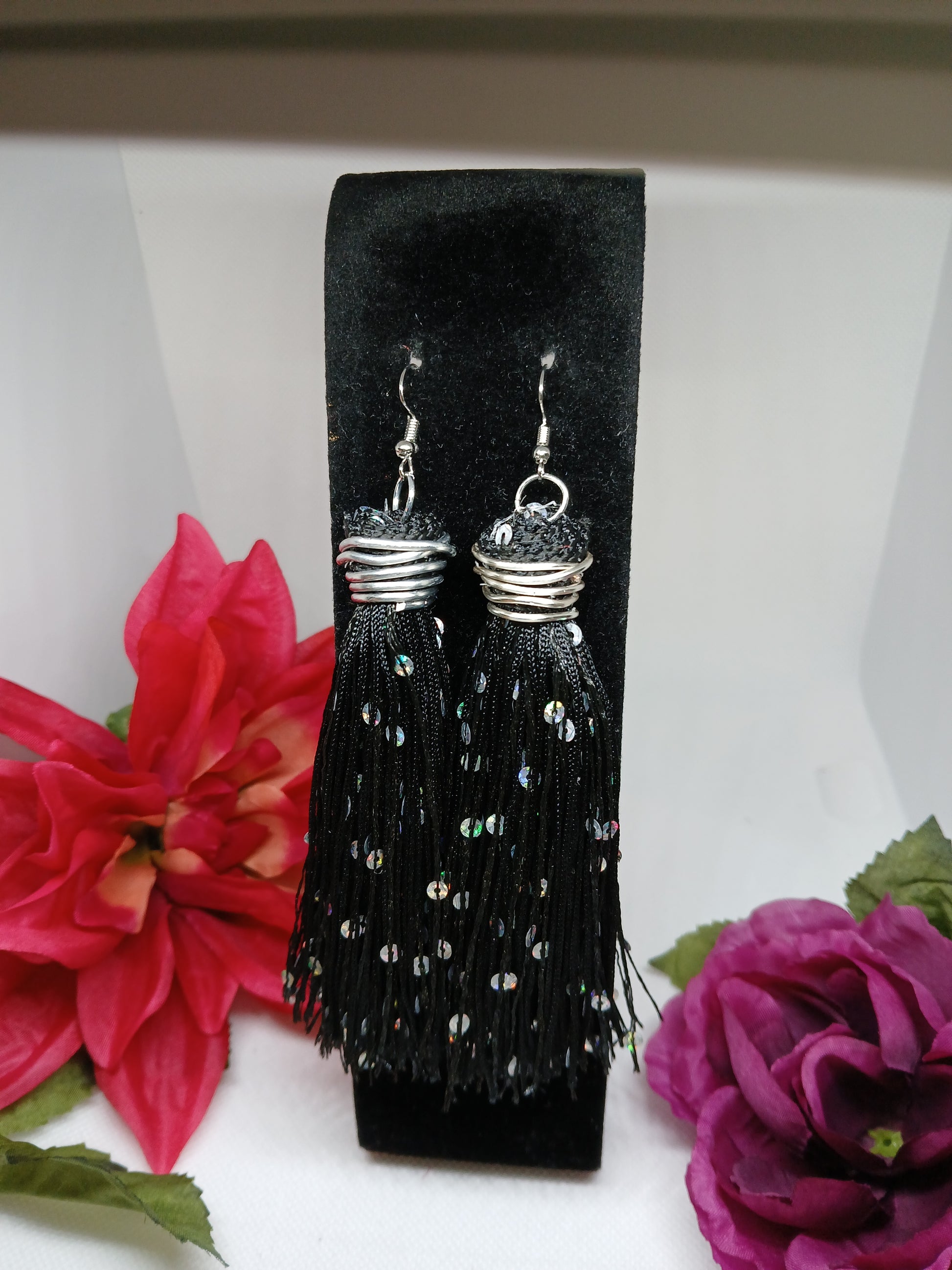 Black Fringe, Sequin and Metal 3 - 3.5in long