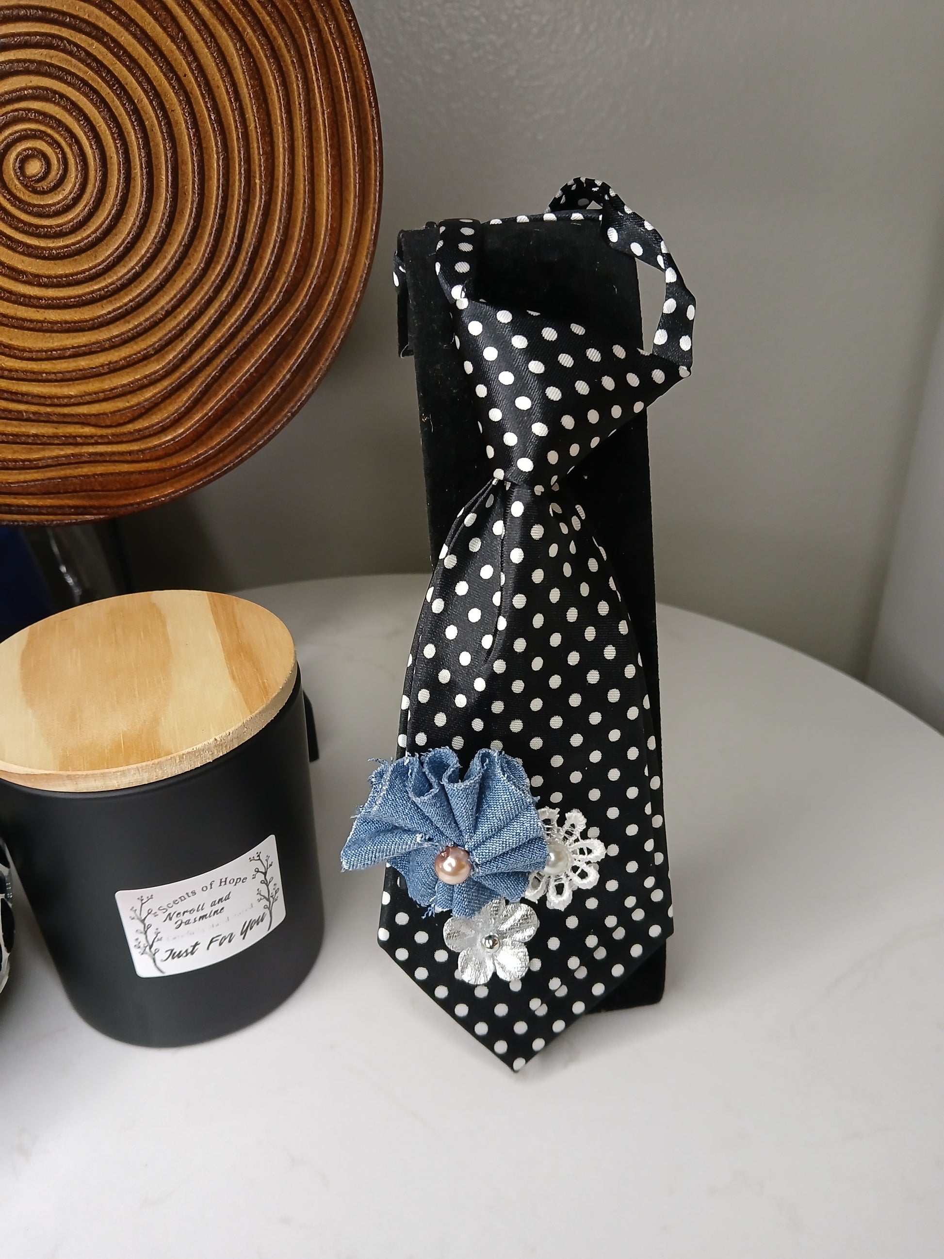 Fabric and Faux Pearls 8 inches long